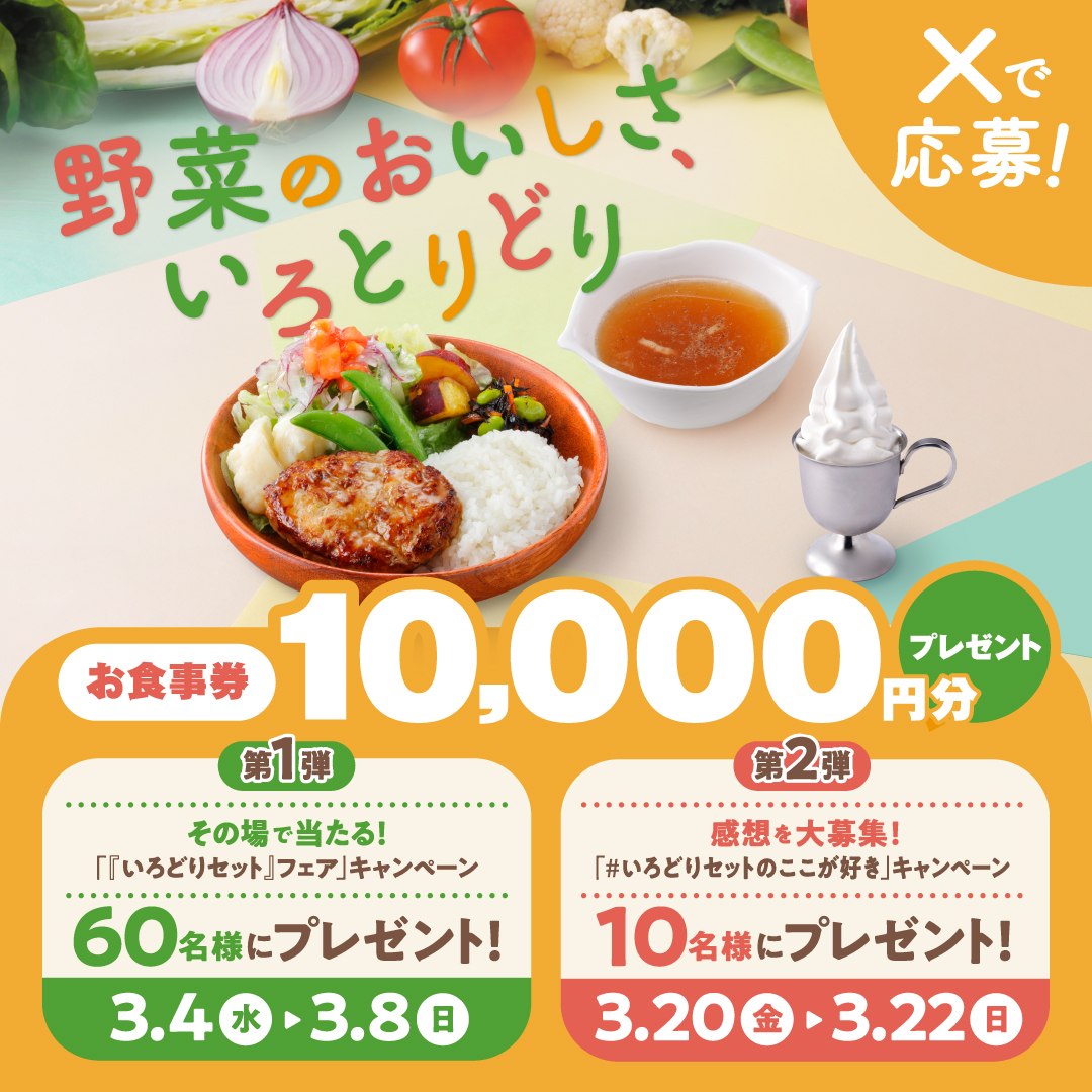 抽選でお食事券が当たる!「『いろどりセット』フェア」 Xキャンペーン開催中!
