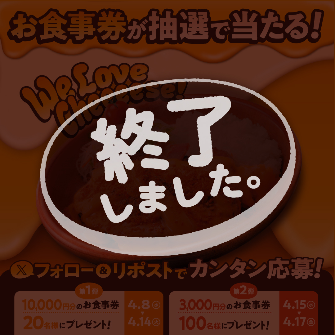 抽選でお食事券が当たる!「『We Love Cheeeese!』フェア」 Xキャンペーン開催中!