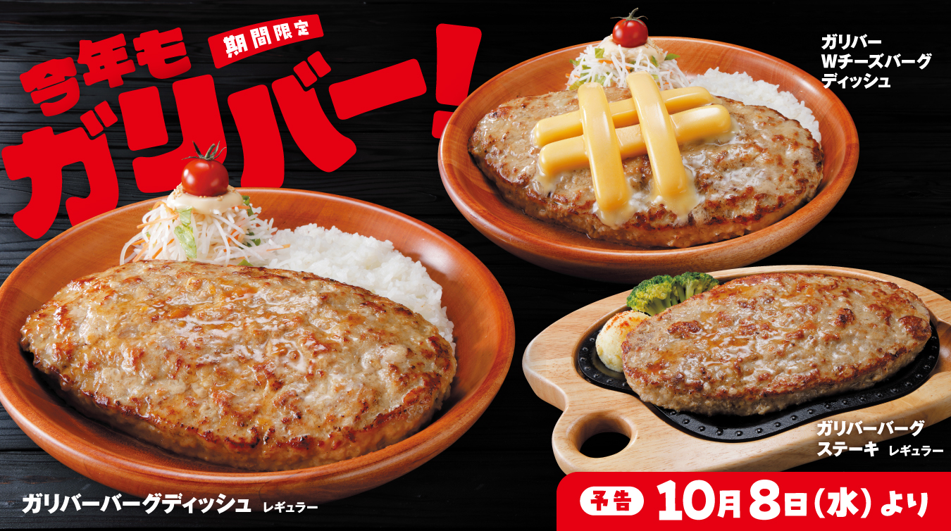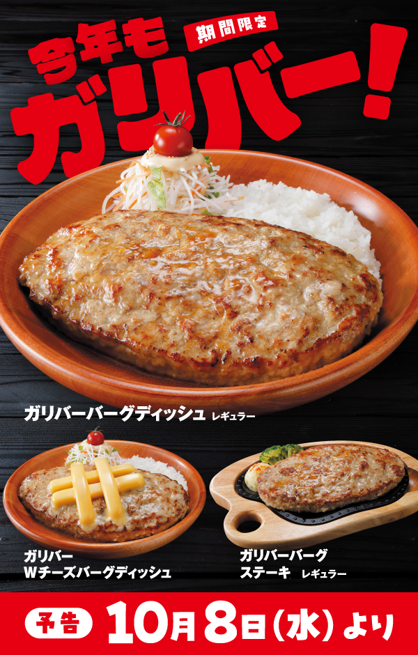 10/8から「今年もガリバー!」フェア開催!今年は人気メニューのガリバー化で過去最多のラインナップに!!
