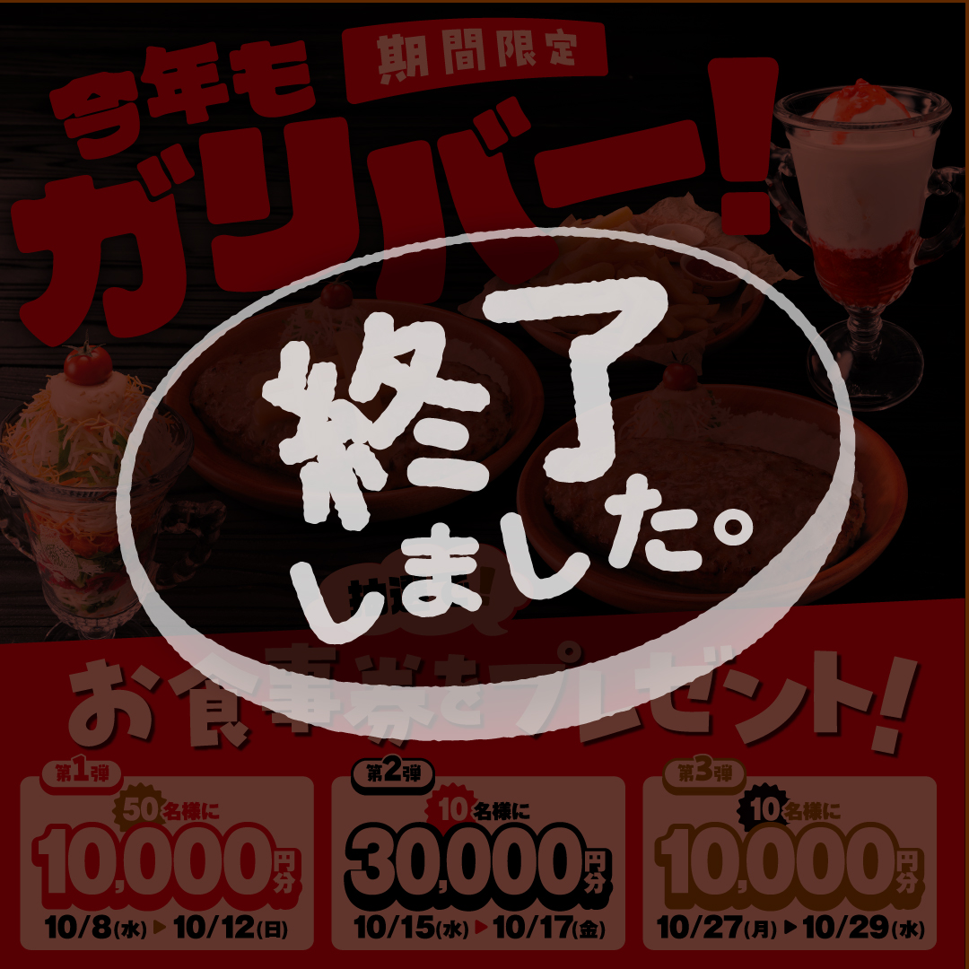 「今年もガリバー!」フェア開催!今年は人気メニューのガリバー化で過去最多のラインナップに!!