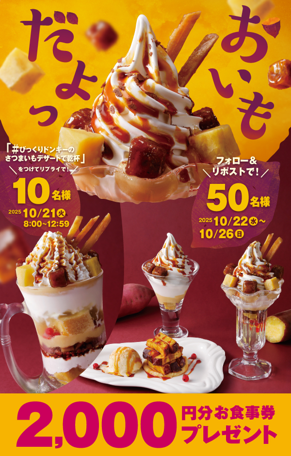 【第1弾】5時間限定!#びっくりドンキーのさつまいもデザートで乾杯 キャンペーン