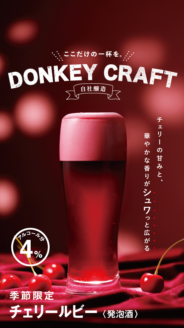 「ドンキーフリー(チェリー)」は、様々なシーンでより多くの人に「チェリールビー」の風味や味わいを愉しんでいただきたいと開発したノンアルコールドリンクです。