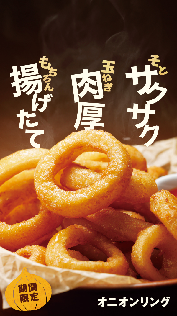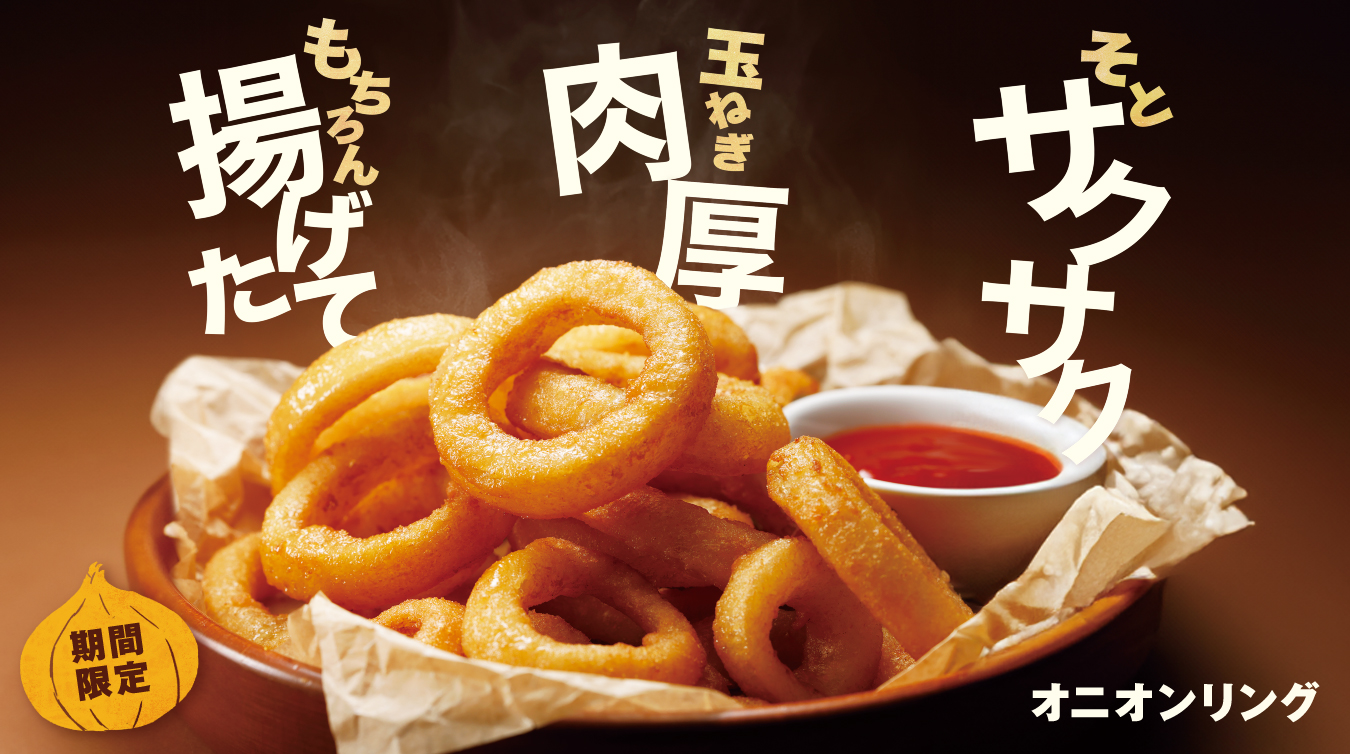 「オニオンリング」を、3月4日(水)から期間限定で販売いたします。外はカリッと香ばしく、中はふんわり甘い肉厚玉ねぎ。